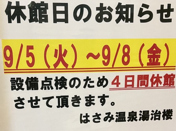 はさみ温泉湯治楼 時間短縮営業延長のお知らせ